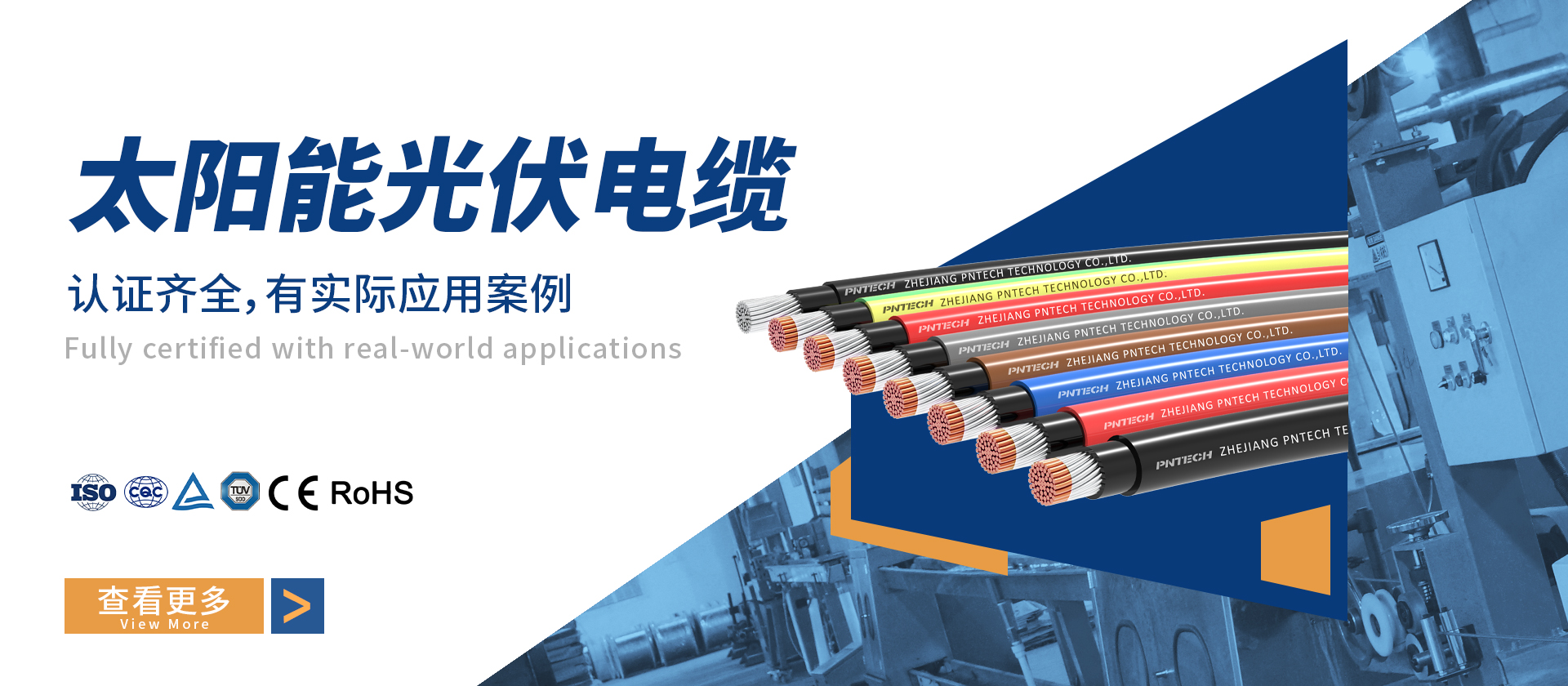 品恩泰克成立于2011年,是一家集太陽能配件生產、銷售、研發及服務為一體的高新技術企業。目前業務涵蓋太陽能光伏電纜、光伏連接器、光伏延長線、光伏匯流套件、微型逆變器線束及光伏鏈接領域應用產品等的生產及銷售。具備提供一站式太陽能能源方案的能力,為客戶提供高品質光伏電纜及配件產品,并提供安裝和能源配套方案支持。